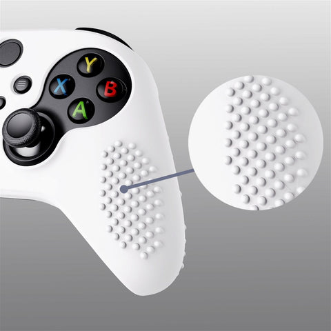 3D Studded Edition White Ergonomic Silicone Case Skin With 6 White Thumb Grip Caps For Xbox Series X/S Controller-SDX3002
