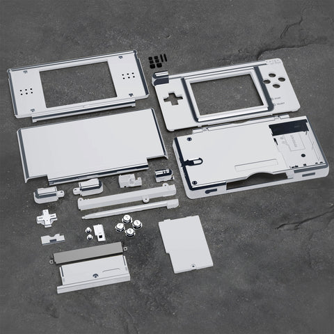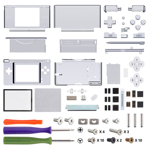 eXtremeRate Chrome Silver Replacement Full Housing Shell & Buttons with Screen Lens for Nintendo DS Lite NDSL - DSLD4002