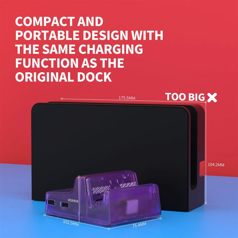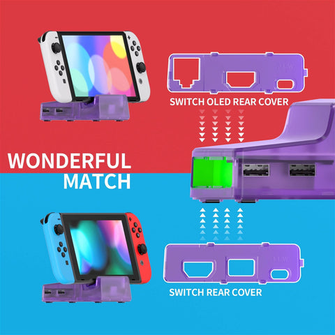 eXtremeRate Clear Atomic Purple AiryDocky DIY Kit Replacement Shell Case For Nintendo Switch & Switch OLED Dock- LLNSM004